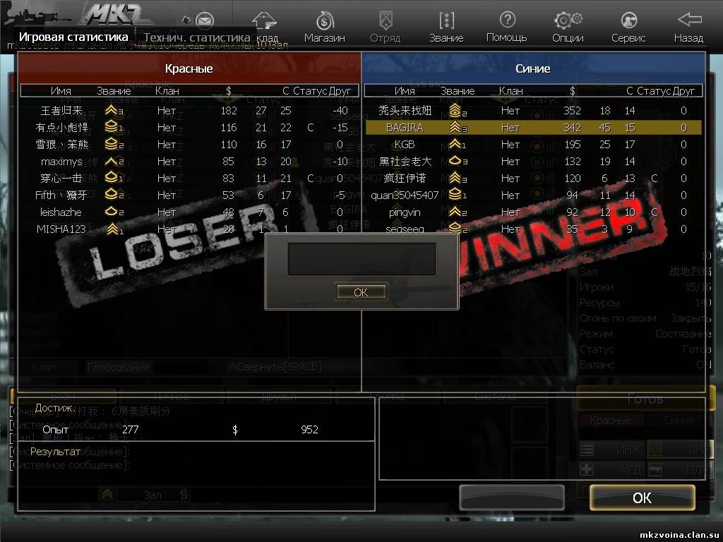 приведствую тебя элита МКЗ!!!! борьба за ранги матёрого волка началась!!!! покажи сколько трупиков хороший боец может оставить после своих боёв. сюда можно вписывать до 3 скриншотов за один день. не более* ранг матёрого волка присваеваеться после того как будут выложены до трёх скрин шотов с результатом сто и более фрагов. при превышение 100 фрагов бойцу онулируються лишние фраги, например ( 136 фрагов это всё равно что 100 фрагов, 36 не в зачёт) при превышение 100 фрагов не допускаеться 100 своих смертей. даже если результат боёв 101 фраг на 98 смерть боец всё равно получает ранг. необходимо ставить дату выкладывания скрин шотов, число,месяц,год. при выявление любого мухляжа ВАП.